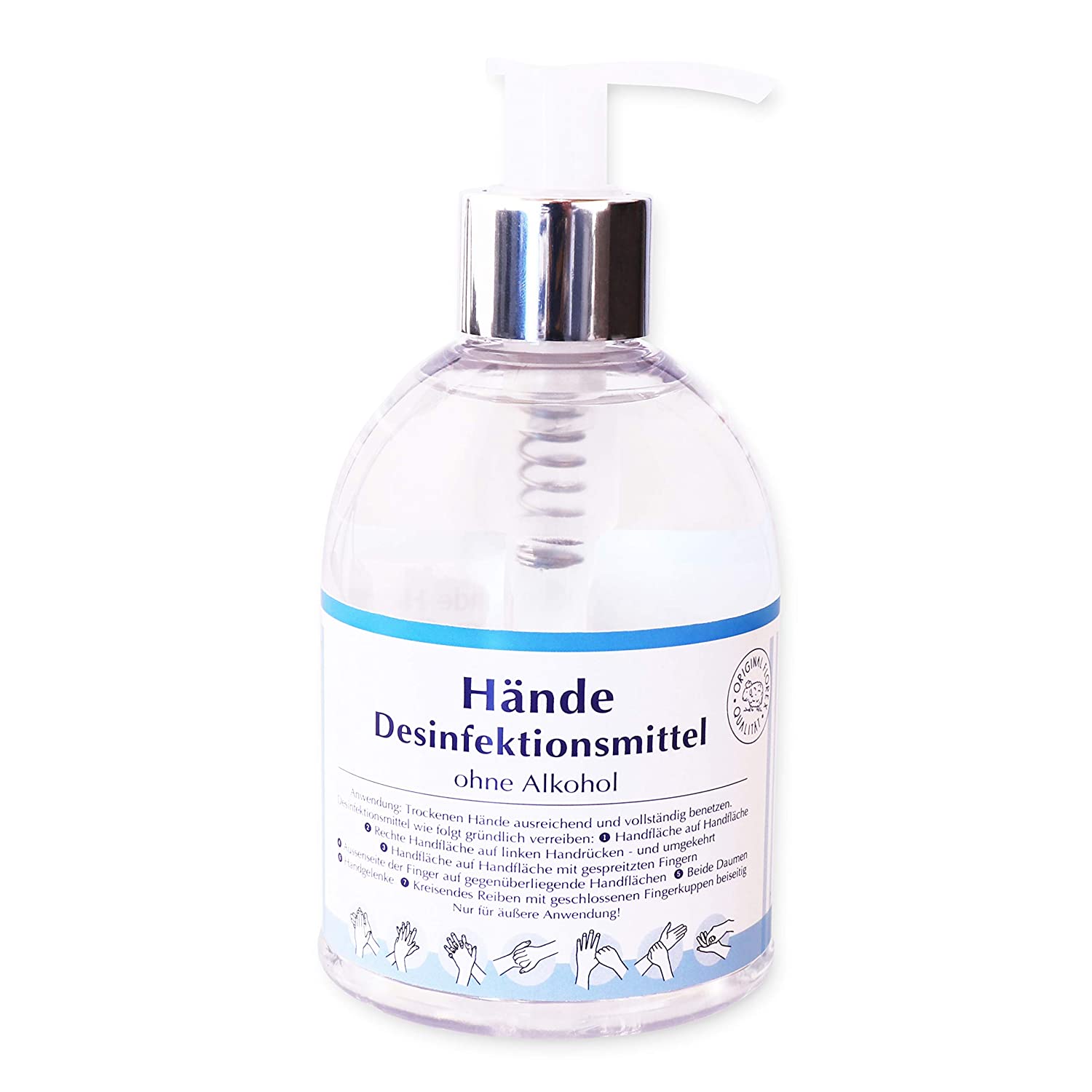Vorbeugendes alkoholfreies, farbstofffreies Desinfektionsmittel zum Einreiben der Hände.