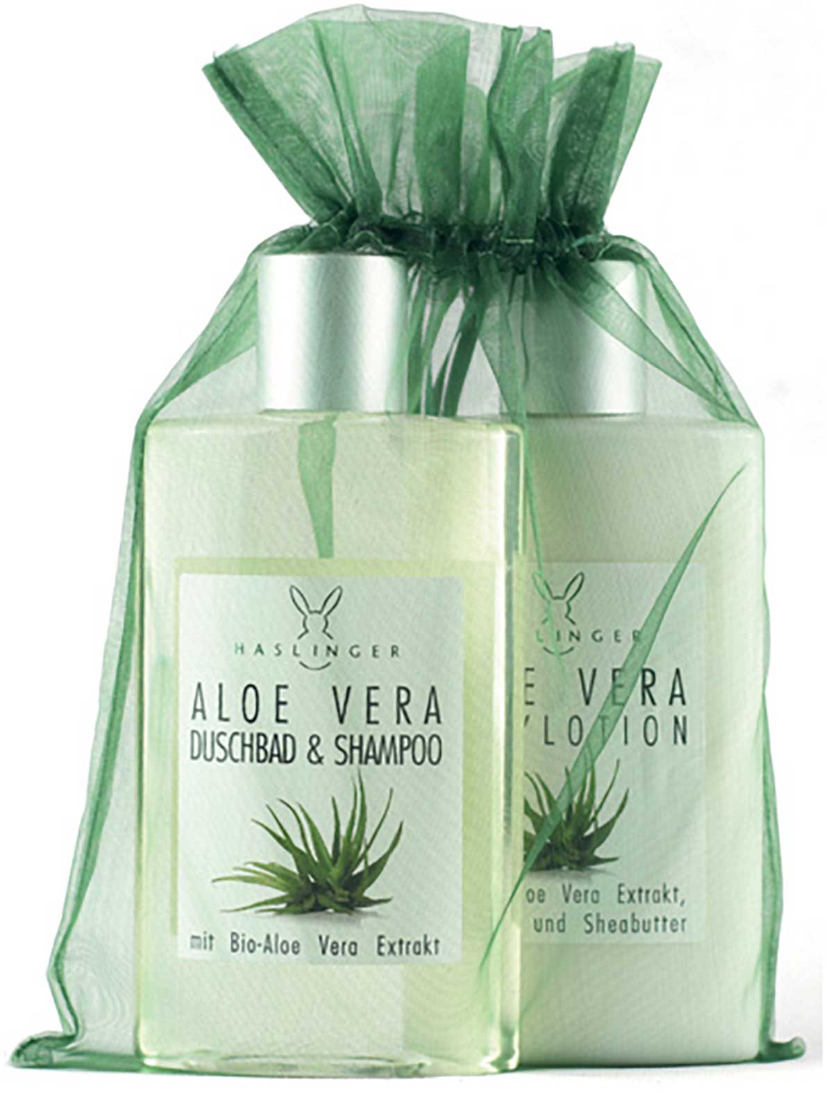 Produktinformationen "Haslinger Geschenkset Aloe Vera Duschbad & Shampoo und Bodylotion im Organzabeutel 3107"
