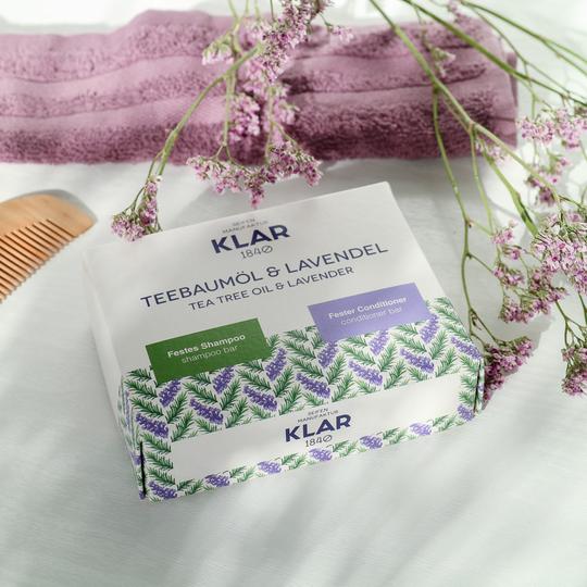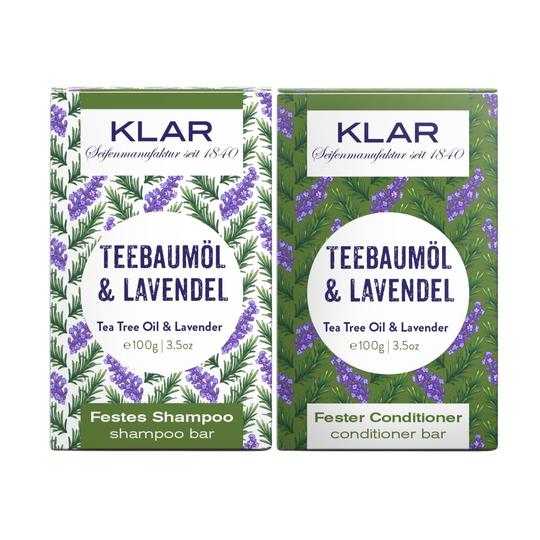 Klar Seifen Geschenkset festes Shampoo & Conditioner Teebaumöl & Lavendel 7040-52