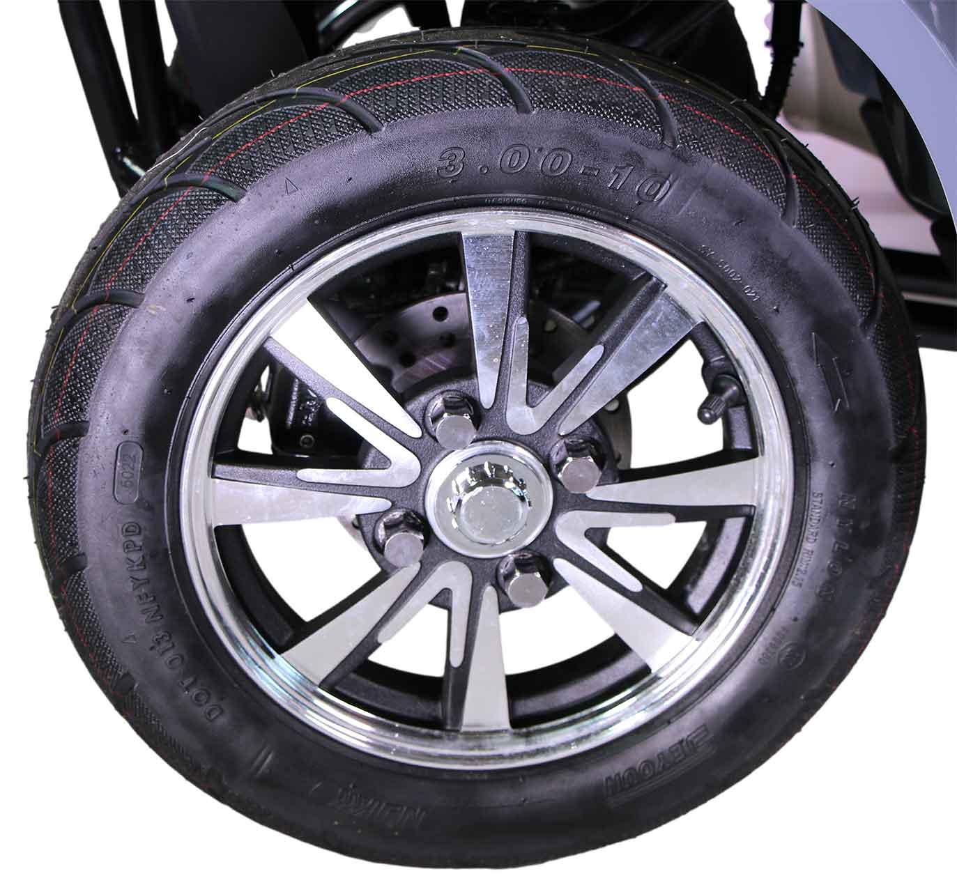 1. Vier Räder: Das Elektromobil verfügt über vier Räder, was für eine verbesserte Stabilität und Sicherheit während der Fahrt sorgt. Dadurch ist es auch für längere Strecken oder unebene Straßen geeignet.