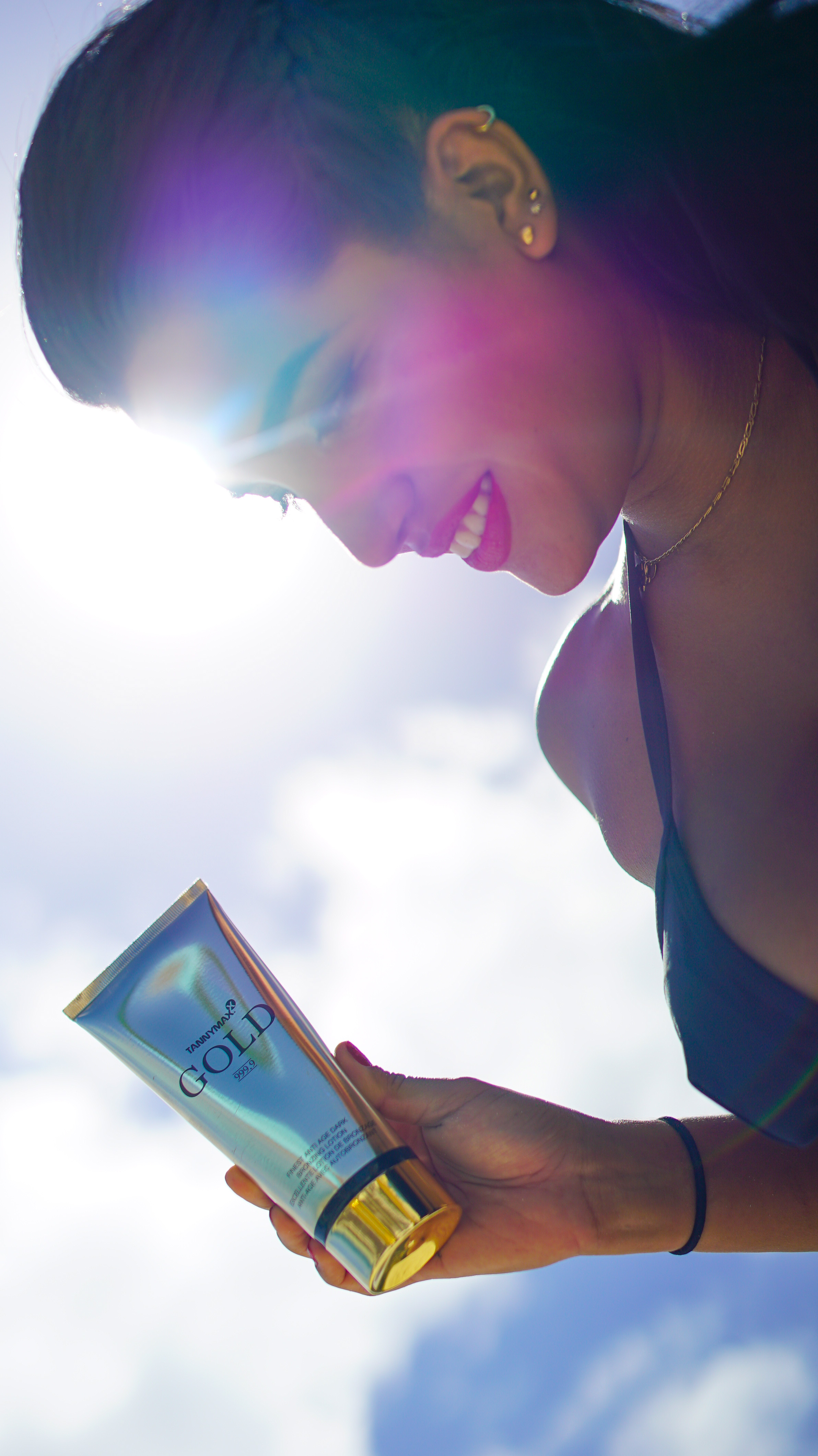 Auch die selbstbräunungsaffinen Benutzerinnen müssen bei der luxuriösen Gold 999, 9-produktlinie auf nichts verzichten: der Gold 999, 9 Bronzer ist ein Selbstbräuner und besteht nicht nur aus hochwertigen Pflegestoffen und Wirkstoffkomplexen, sondern auch aus dem Selbstbräuner DHA, der für eine exklusive Bräune ohne Sonne sorgt.